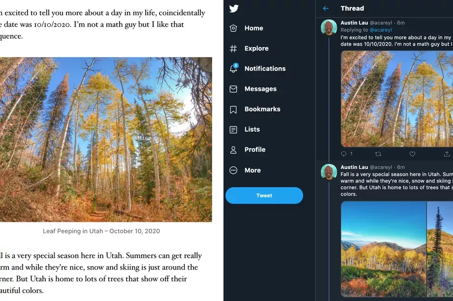 Postingan blog (kiri) yang dijadikan utas Twitter (kanan). Foto: WordPress