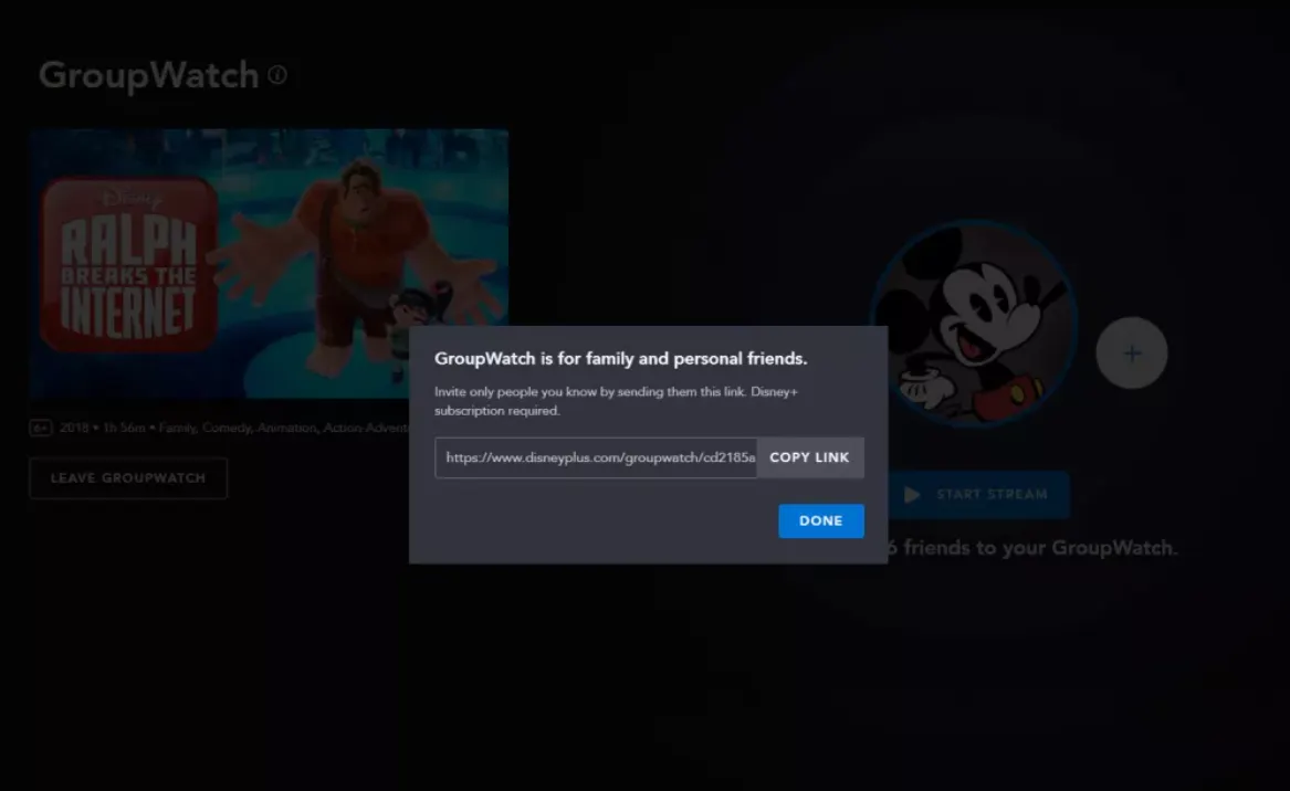 Jika ingin memulai sesi GroupWatch, Kamu akan disambungkan ke sebuah tautan. Melalui tautan tersebut, Kamu akan mendapatkan kode unik yang dapat dibagikan ke pengguna lain.