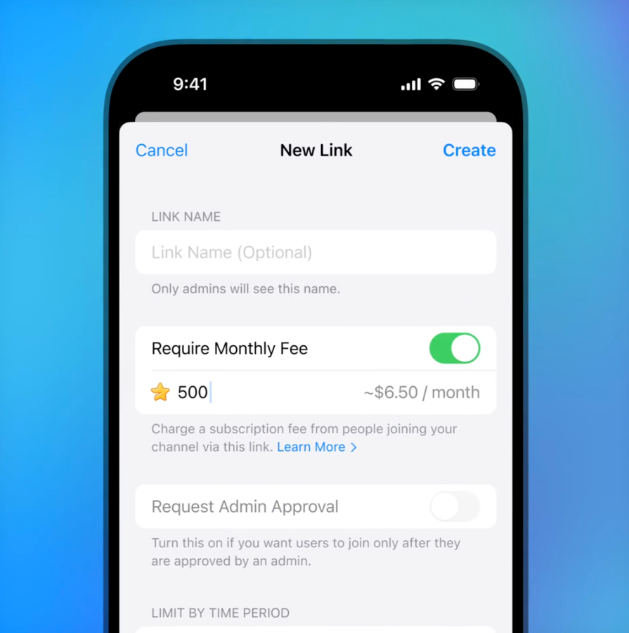 Langganan ini dapat dibeli melalui Stars sebagai mata uang aplikasi Telegram. Konten kreator akan menetapkan harga terlebih dahulu untuk menentukan harga langganan setiap bulannya. Mata uang yang telah terkumpul dapat dikonversi menjadi uang kripto Toncoin atau iklan bersubsidi.
