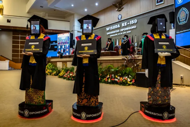 Teknologi.id - Ada yang unik pada acara wisuda Universitas Diponegoro (Undip) Semarang ke-159 yang digelar di Gedung Prof. Soedarto, Kampus Tembalang, Semarang pada Senin (27/7/2020).