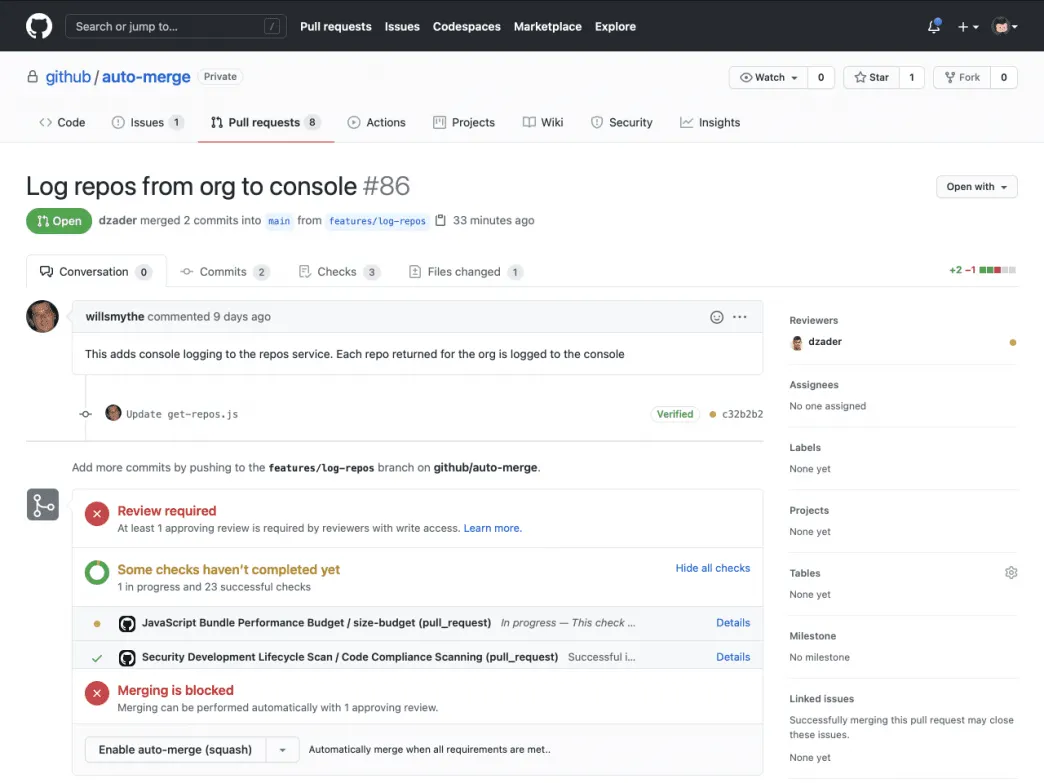 Orang-orang yang membuat pull request sering kali harus menunggu persetujuan administrator, meskipun hanya untuk perubahan sederhana. Fitur baru ini secara otomatis akan menggabungkan kode jika lolos pemeriksaan yang sudah ditetapkan oleh admin.