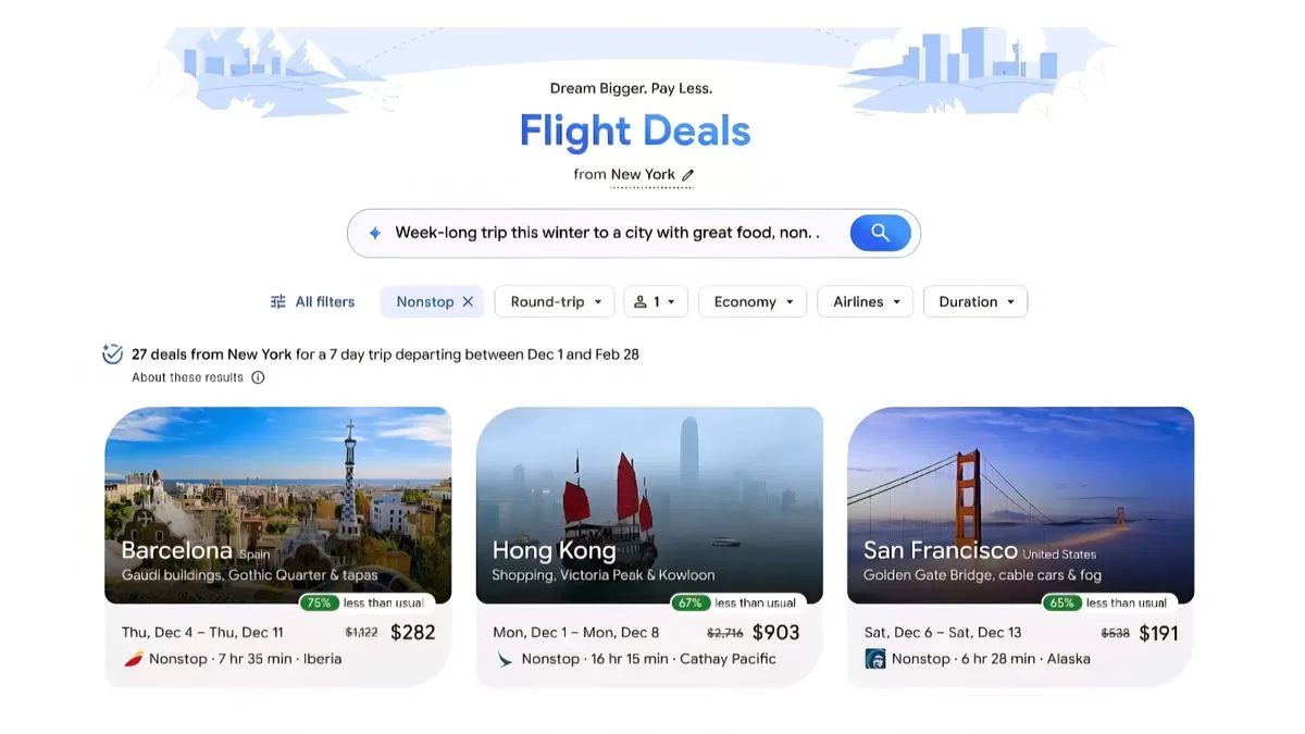 “Yang membuat Flight Deals unik adalah penggunaan AI canggih Google untuk memahami detail apa yang Anda cari dan mengidentifikasi destinasi yang sesuai,” jelas Google.