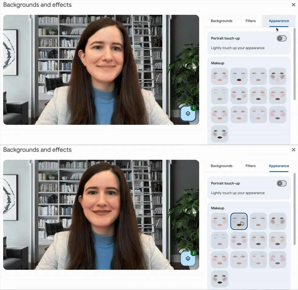 Menariknya, gaya makeup yang kamu pilih akan tersimpan otomatis, jadi kamu tidak perlu menatanya ulang di pertemuan berikutnya. Namun, Google tetap menyarankan untuk menyesuaikan gaya makeup dengan konteks rapat agar tetap terlihat profesional.