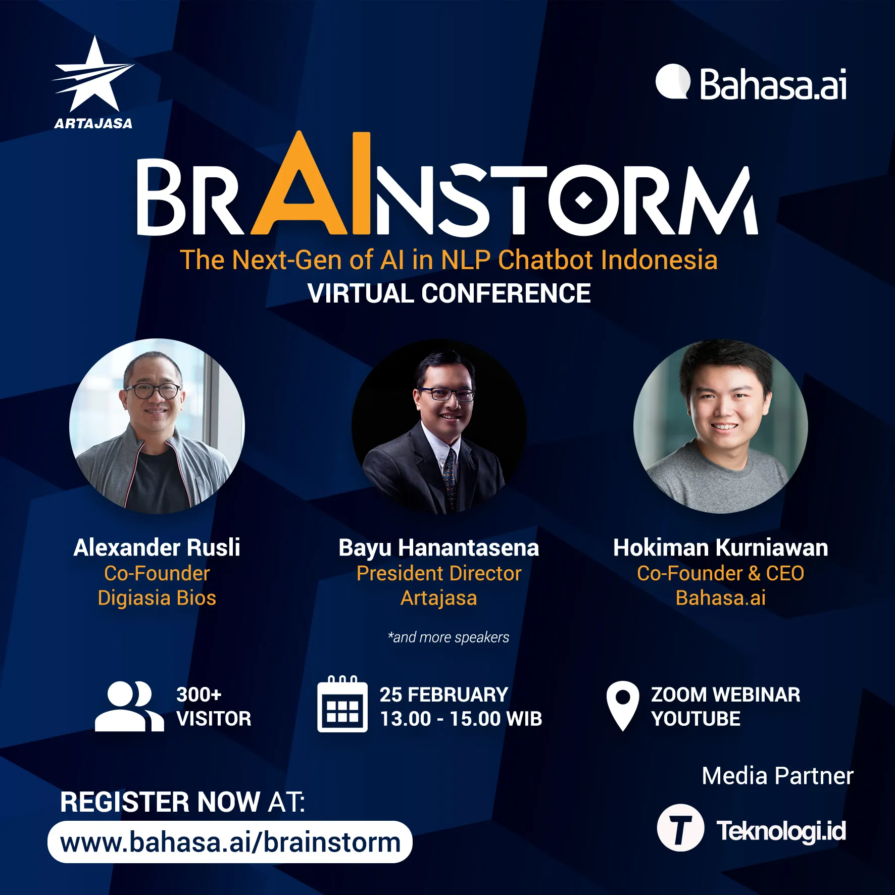 Teknologi.id - Bahasa.ai, pengembang Conversational Commerce berbasis Artificial Intelligence (AI) karya anak bangsa menggelar “BRAINSTORM: The Next-Gen of AI in NLP Chatbot Indonesia” yang didukung oleh Artajasa. Acara yang diselenggarakan pada 25 Februari 2021 ini bertujuan untuk memperkenalkan inovasi teknologi AI masa kini yang telah diadopsi oleh berbagai perusahaan terdepan di Indonesia.