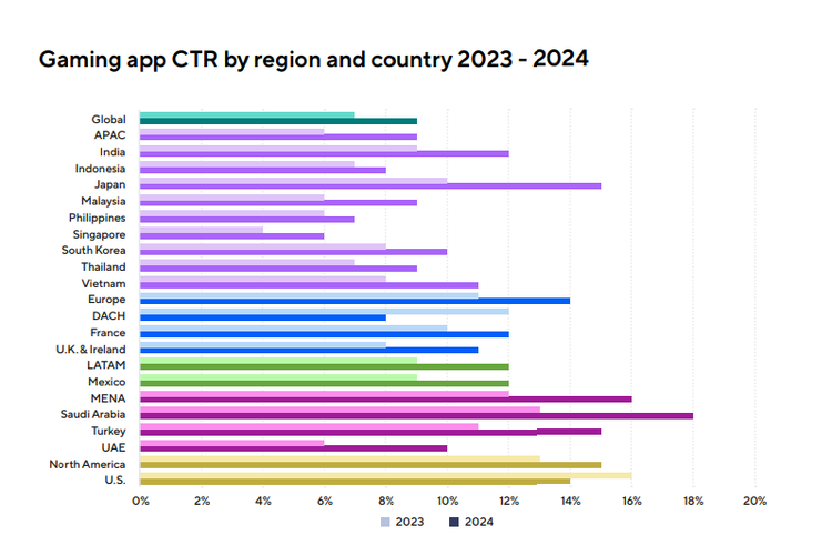 Keterbukaan terhadap pelacakan ini memungkinkan pengembang menampilkan iklan yang lebih relevan dan efektif. Sejalan dengan itu, tingkat Click Through Rate (CTR) iklan di Indonesia meningkat dari 7 persen pada 2023 menjadi 8 persen pada 2024, mendekati rata-rata global yang berada di angka 9 persen. Hal ini menjadi bukti bahwa pengguna di Indonesia tidak hanya aktif bermain, tetapi juga responsif terhadap konten promosi yang sesuai dengan minat mereka.
