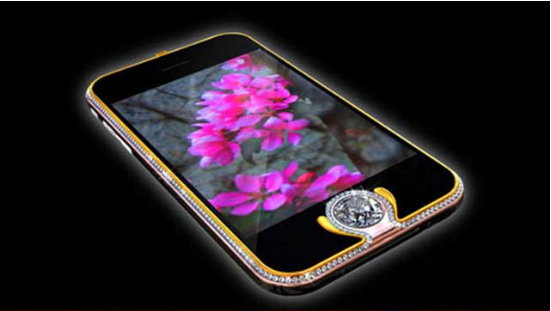 Bagian bezel depan terpasang 136 berlian, logo belakang memiliki 53 berlian dan tombol home terdapat berlian 7,1 karat.