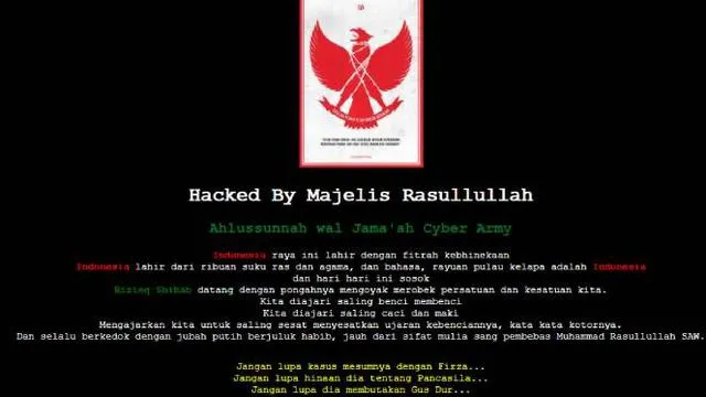 Serangan oleh hacker tersebut membuat tampilan situs menjadi berlatar belakang hitam. Di bagian atas tampilan terdapat keterangan 'Hacked by Majelis Rasulullah', diikuti dengan seruan yang ditujukan kepada Habib Rizieq Shihab dan FPI.