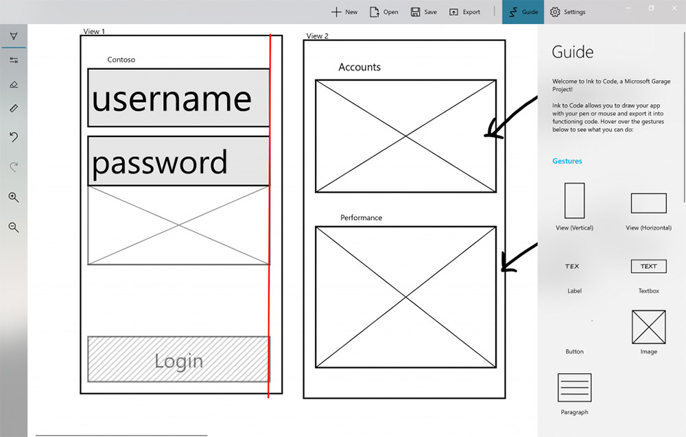 Dengan Ink to Code, pengembang dapat membuat sketsa UI (user interface) aplikasi menggunakanstylus. Kemudian membiarkan program ini menuliskan barisan-barisan kode dengan sendirinya. Jadi sketsa yang dibuat tidak hanya dirapikan saja, namun juga dibuatkan kode-kode pemrogramannya.