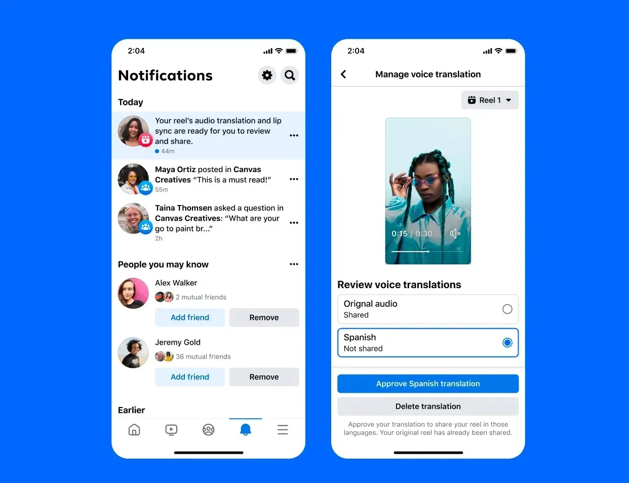“Dengan Meta AI Translations, Anda dapat berbicara kepada penonton dalam bahasa mereka sendiri, membuka akses ke audiens baru yang sebelumnya mungkin kesulitan memahami konten Anda.”