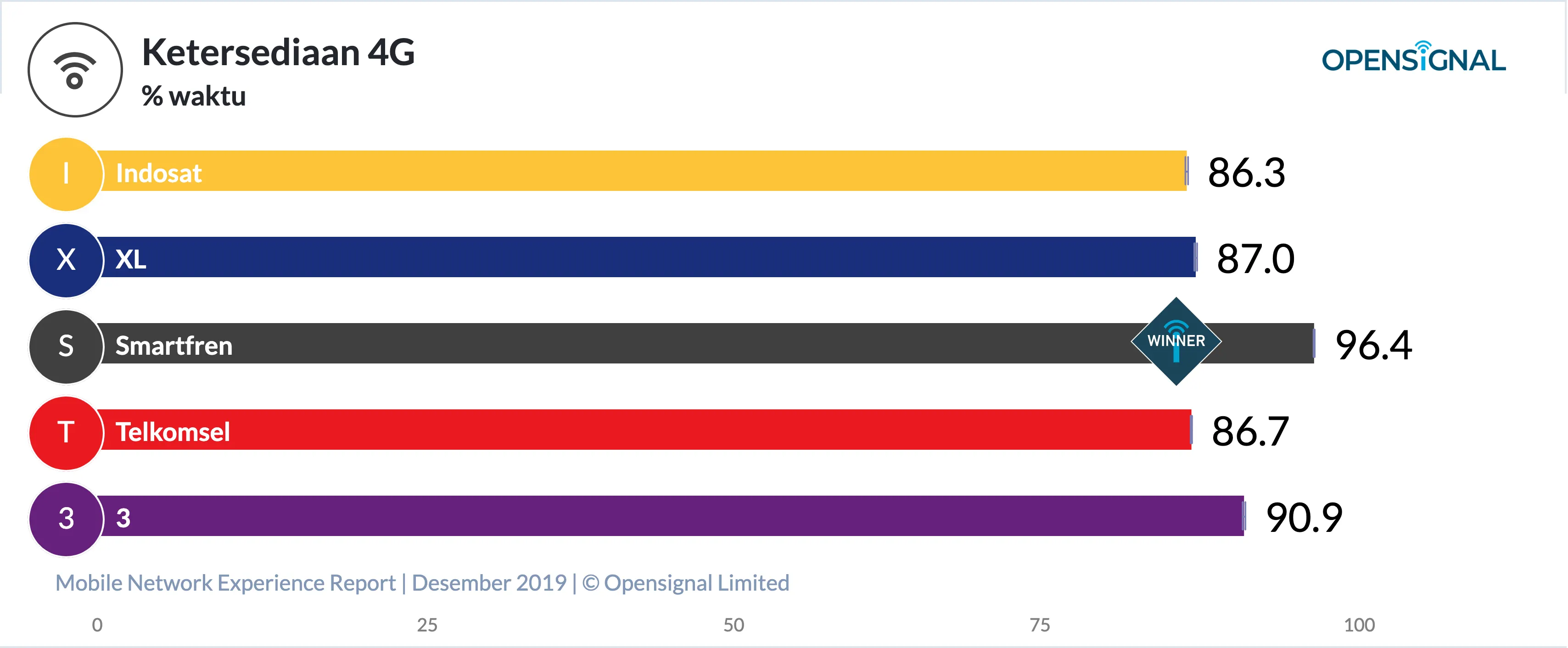 Secara keseluruhan, operator lain juga mengalami peningkatan ketersediaan jaringan 4G yang sukses membuat ketersediaan 4G di Indonesia tumbuh positif ke angka 86 persen.
