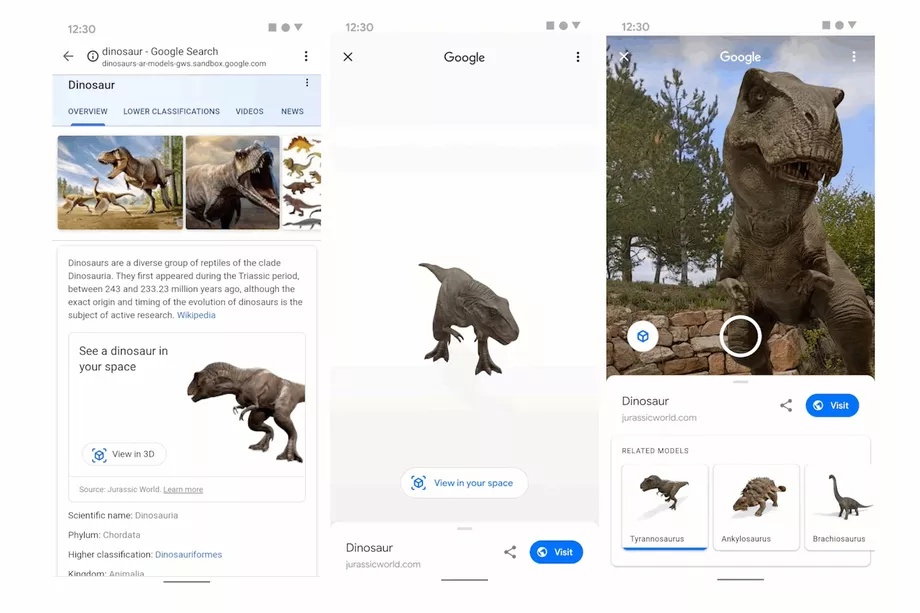 Google menambahkan beragam hewan dalam bentuk AR ke aplikasi pencariannya dan memperkenalkan beragam binatang seperti kucing, kalajengking, beruang, harimau, dan masih banyak lagi.