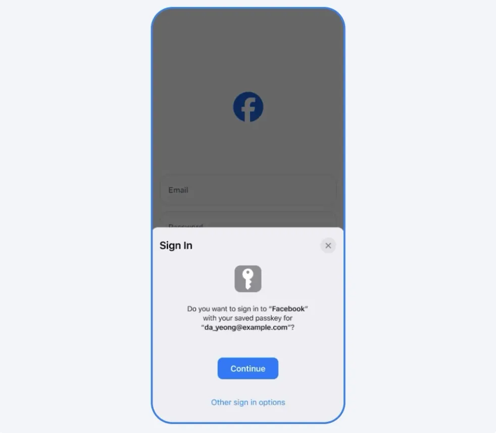 Passkey adalah sistem autentikasi berbasis biometrik yang menggantikan kebutuhan akan password dan OTP. Dengan Passkey, pengguna bisa masuk ke akun Facebook mereka hanya dengan melakukan autentikasi melalui sidik jari (fingerprint), face recognition, PIN layar kunci, atau metode keamanan perangkat lainnya.