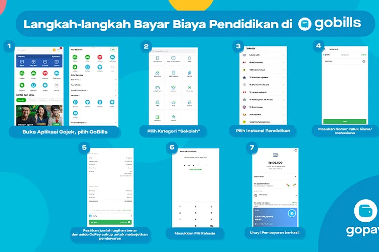 Pertama, buka aplikasi Gojek, lalu pilih menu "lainnya". Kemudian gulirkan ke bawah hingga menemukan menu "Sekolah", lalu pilih instansi pendidikan yang dimaksud.