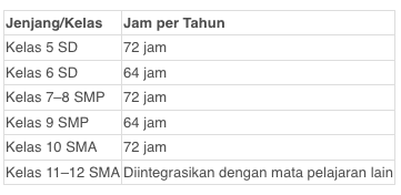 Pemerintah menetapkan jumlah jam pelajaran per tahun sebagai berikut: