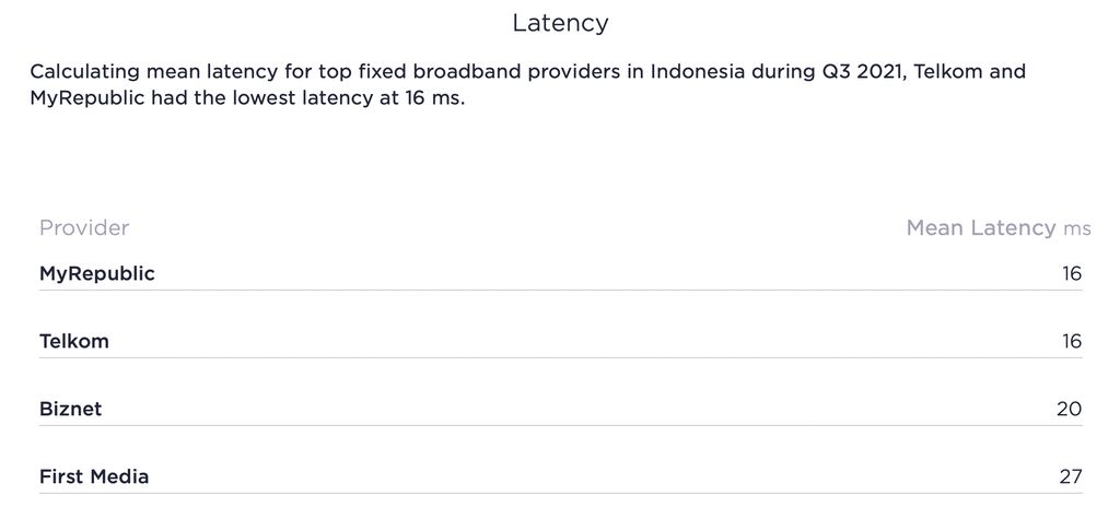 Sedangkan Biznet menjadi jawara sebagai provider fixed broadband terkencang mengalahkan MyRepublic, Telkom, dan First Media.
