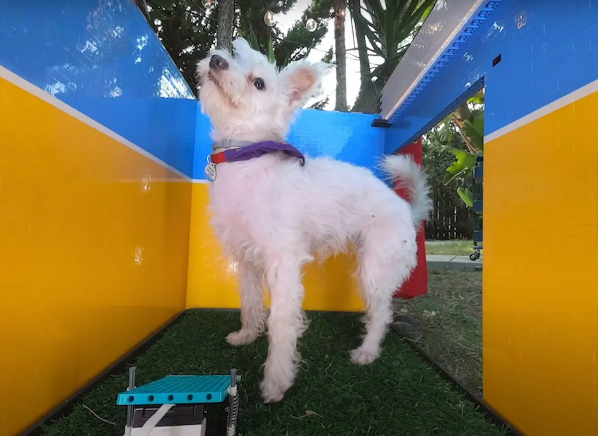Teknologi.id - Simone Giertz, perempuan yang terkenal karena suka merancang robot sendiri ini baru saja membuat bilik foto dari Lego untuk Scraps, anjing peliharaannya.