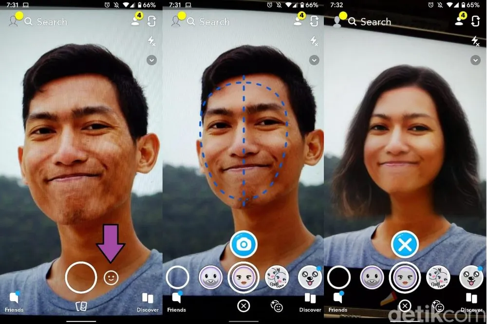 Filter ini akan membuat pengguna bisa mengubah tampilan wajah pria menjadi wanita berparas cantik. Begitupun sebaliknya, tampilan wajah wanita bisa menjadi pria ganteng.