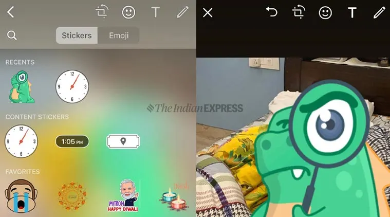 Saat mengirim video atau foto, pengguna dapat mengeditnya untuk menambahkan stiker juga. Cukup ketuk ikon smiley di bagian atas, dan opsi untuk stiker akan ditampilkan. Pengguna dapat memilih stiker dan menambah atau mengurangi ukurannya dengan menjepitnya. Selain itu, juga dapat menghapus stiker dengan menekannya lalu menariknya ke arah simbol tempat sampah.