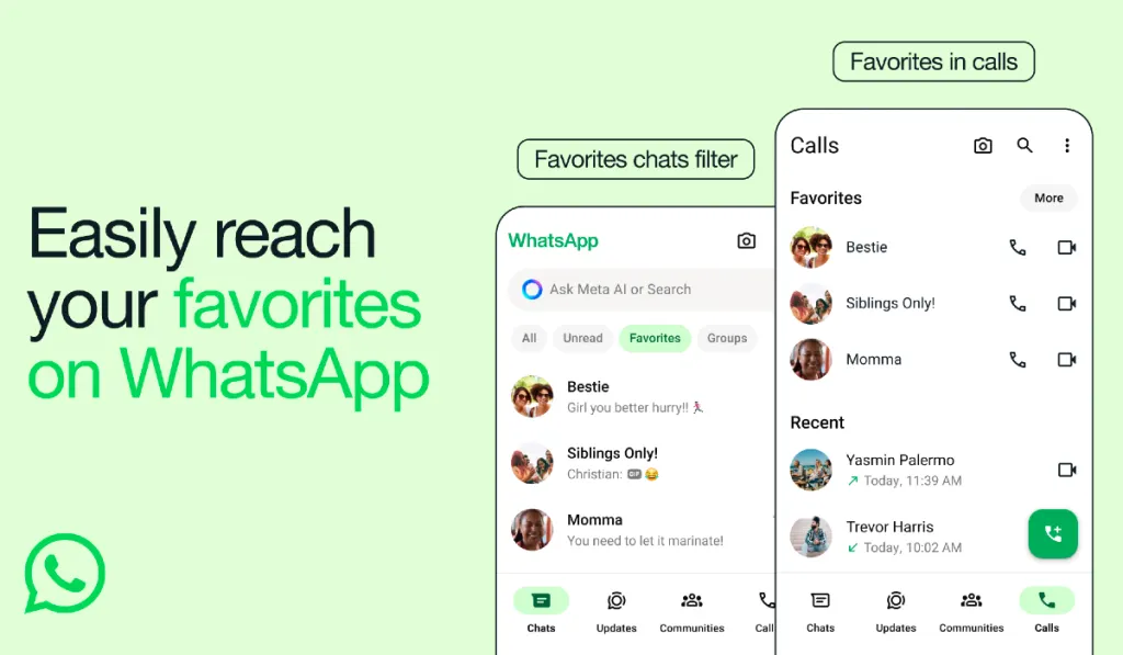 Fitur ini membantu menempatkan semua obrolan dari teman dekat atau anggota keluarga di satu tempat yang mudah diakses. WhatsApp juga menambahkan bagian 'Favorit' di tab panggilan, sehingga pengguna bisa langsung menghubungi kontak favorit tanpa harus mencari nama di daftar kontak atau log panggilan.