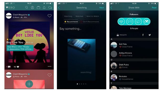 Dalam keterangan aplikasi, Vero memaparkan konsep media sosial mereka adalah sharing rekomendasi dari mulai film hingga buku.