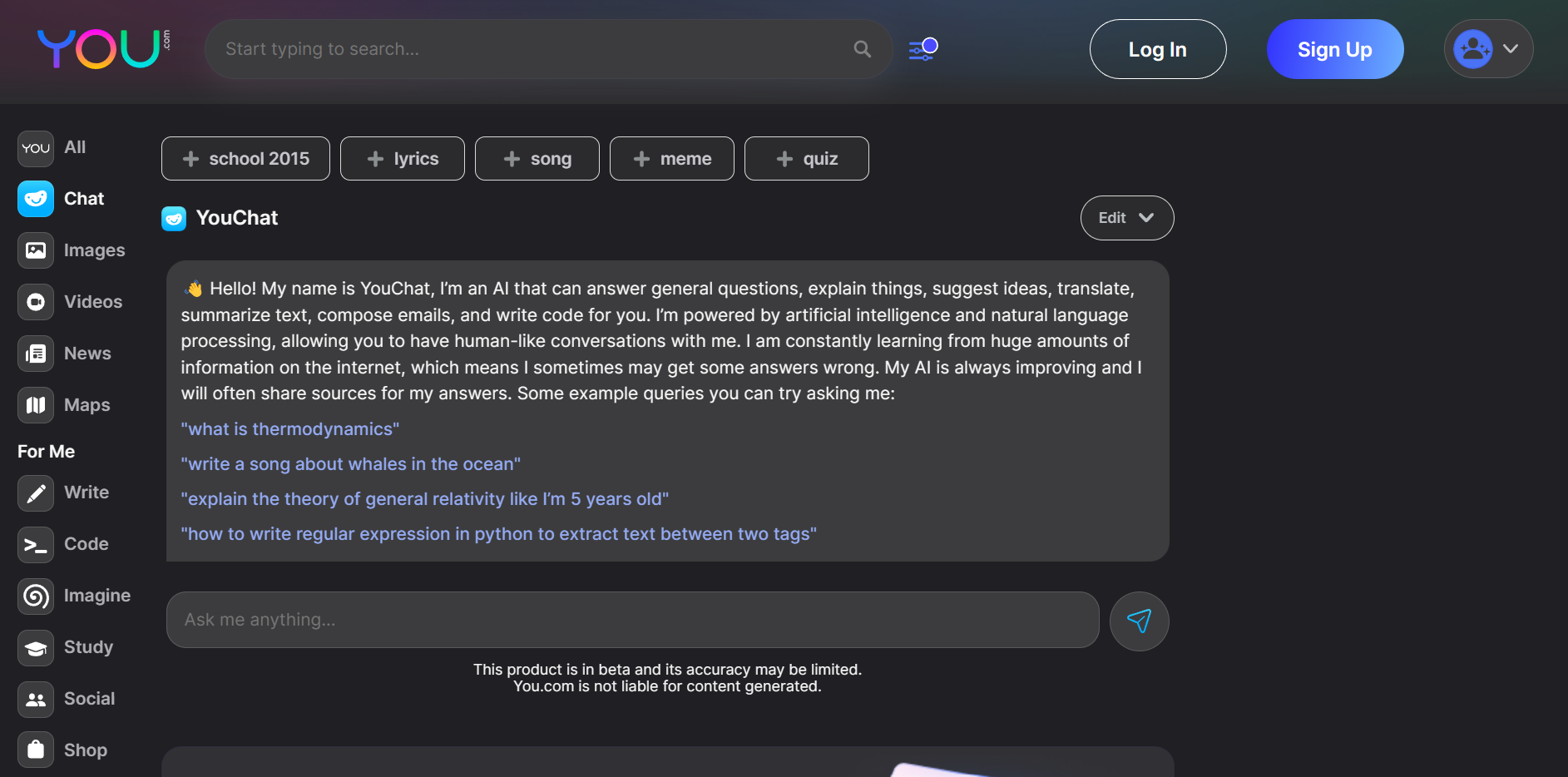 3. YouChat (alternatif terbaik dari ChatGPT)