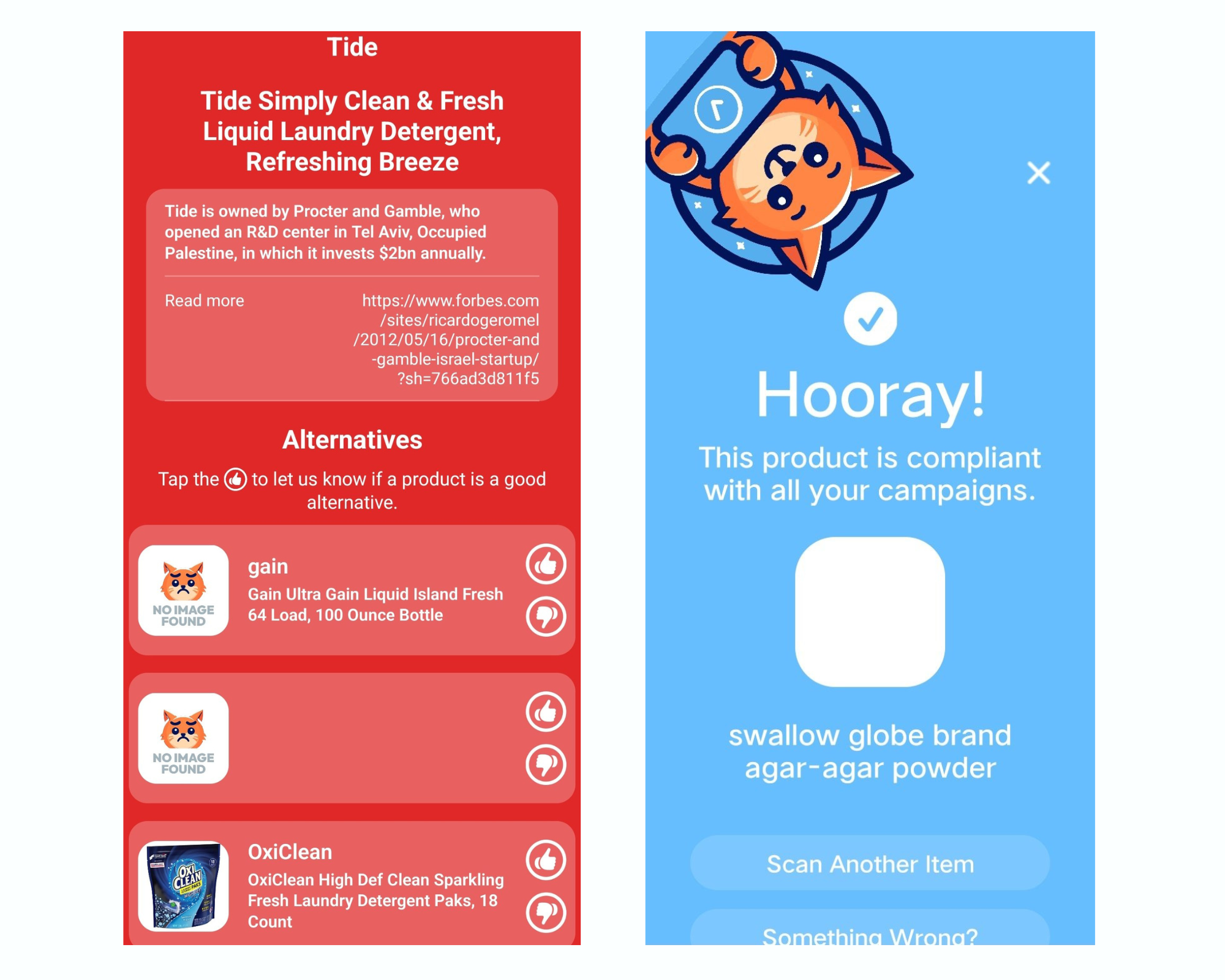 Aplikasi Boycat ini memungkinkan pengguna untuk memperoleh informasi lebih lanjut tentang produk dan bahkan menawarkan alternatif terhadap perusahaan yang dianggap mendukung Israel. Menurut pendiri Boycat, Adil Abbuthalha, pengguna dapat menggunakan aplikasi ini dengan mengarahkan kamera ponsel mereka ke barcode produk. Aplikasi tersebut akan secara otomatis mendeteksi dan memberikan informasi tentang perusahaan yang memproduksi produk tersebut.