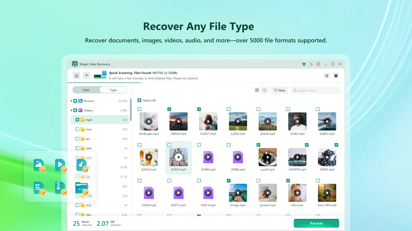 Telusuri file yang ditemukan. Gunakan fungsi pratinjau untuk memverifikasi dokumen atau foto sebelum dipulihkan.