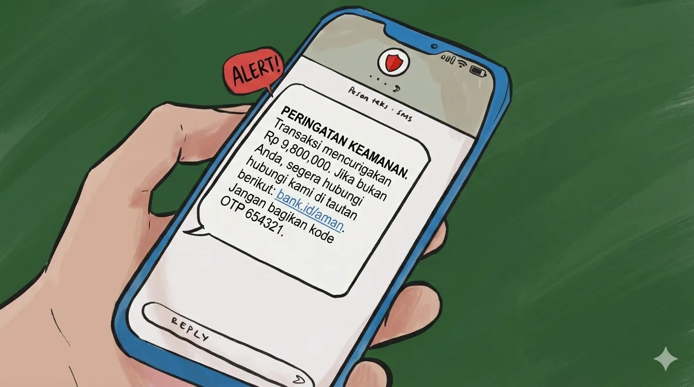 Sebuah studi kasus insiden terkini mencatat seorang korban kehilangan dana sekitar Rp45 juta hanya dalam waktu singkat setelah merespons SMS verifikasi yang ia kira asli. Korban tidak menyadari bahwa tautan yang ia klik di dalam SMS tersebut adalah portal phishing yang dirancang untuk mencuri username, password, dan kode OTP perbankan secara real-time.