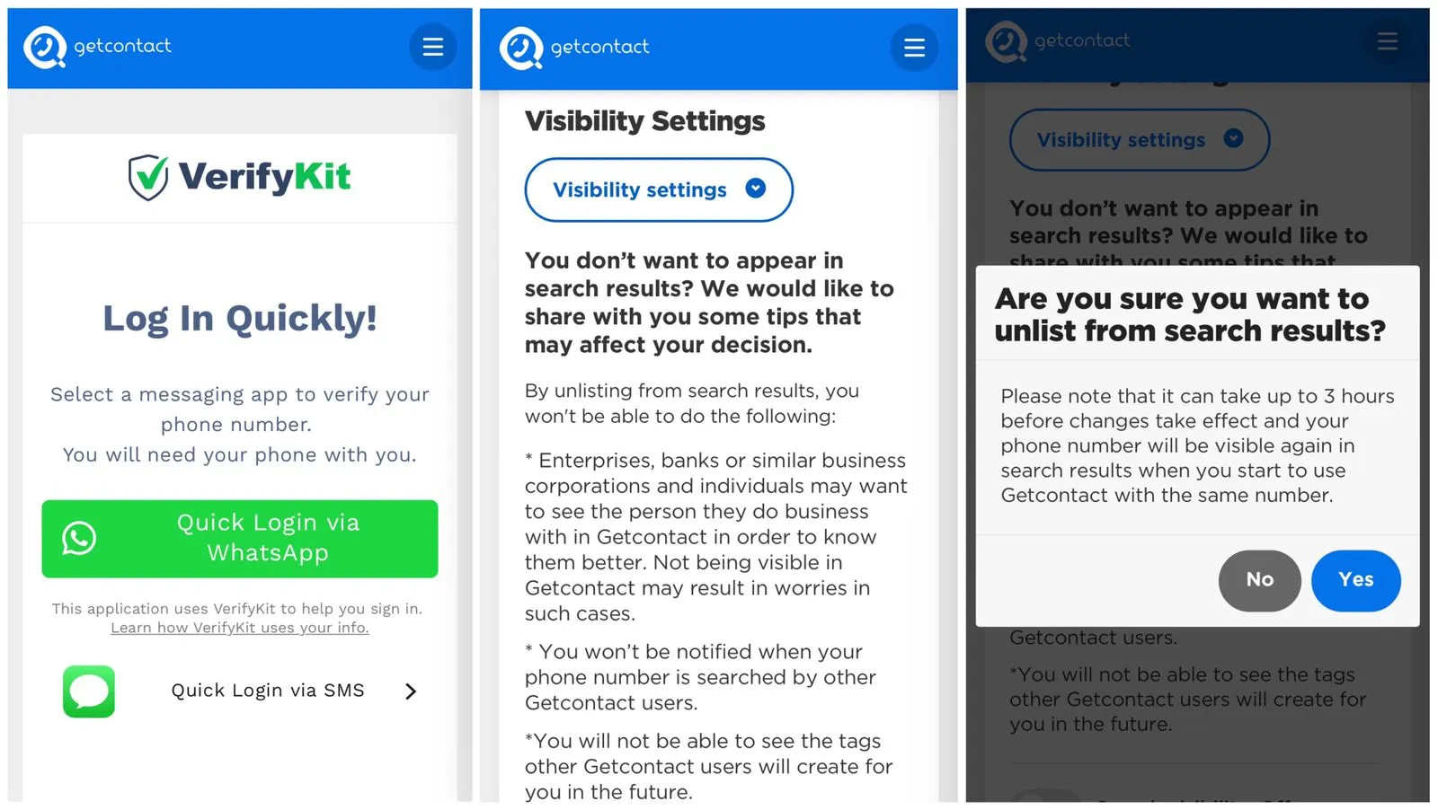 Pengguna lain jadi mengetahui dkita seperti tempat bekerja, komunitas yang diikuti, dan informasi terkait privasi lainnya. Untuk pengguna yang merasa tidak nyaman akan hal ini, GetContact menawarkan fitur “Visibility” yang bisa diatur agar nama pengguna tidak dapat dicari oleh pengguna lainnya.