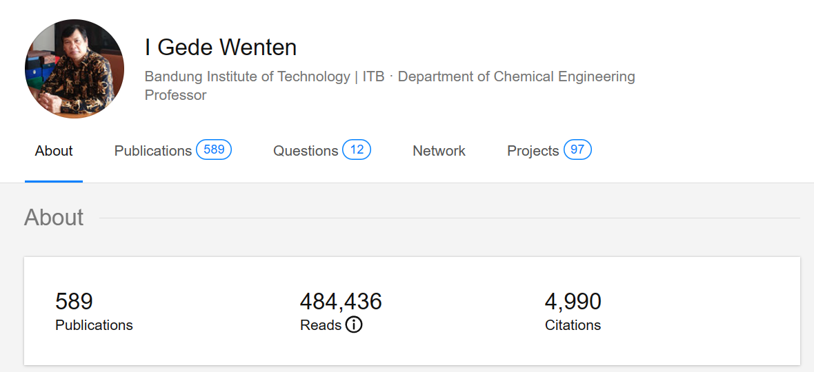 Teknologi.id - I Gede Wenten menempati peringkat 7 'Indonesia Top 10000 Scientist' pada kategori 'Engineering & Technology'. Pemeringkatan ini dilakukan oleh AD Scientific Index yang merupakan sistem pemeringkatan dan analisis berdasarkan kinerja ilmiah dan produktivitas dari sebuah universitas dan seorang ilmuan.