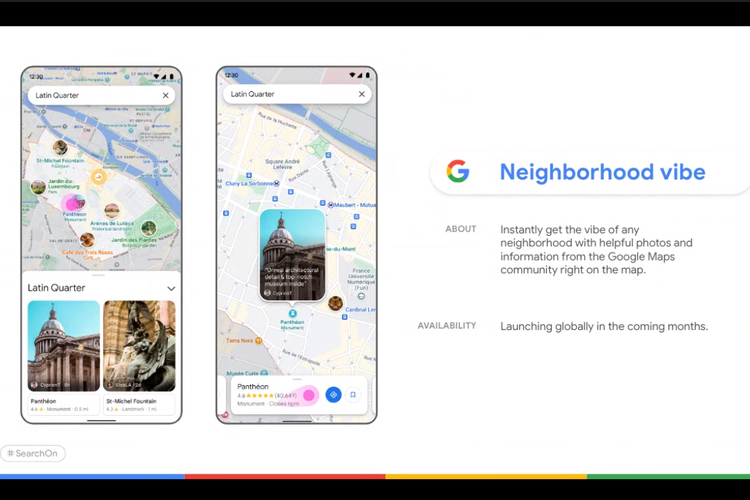 Fitur "Neighbood Vibe" yang dikeluarkan oleh Google ini akan memberi kalian gambaran tentang distrik kota sebelum kalian berkeliling di kota yang akan kalian kunjungi. Fitur ini tersedia untuk perangkat Android dan iOS yang akan membantu kalian mempelajari apa yang baru dan layak dilihat di area tertentu melalui info dan citra penginderaan jauh. Kalain dapat menemukan kawasan bersejarah yang penuh dengan landmark dan museum. Bahkan, kalian dapat menemukan restaurant yang sedang ramai atau terkenal muncul di Google maps. Hal ini juga telah dikemukakan oleh Google melalui akun Twitter resminya