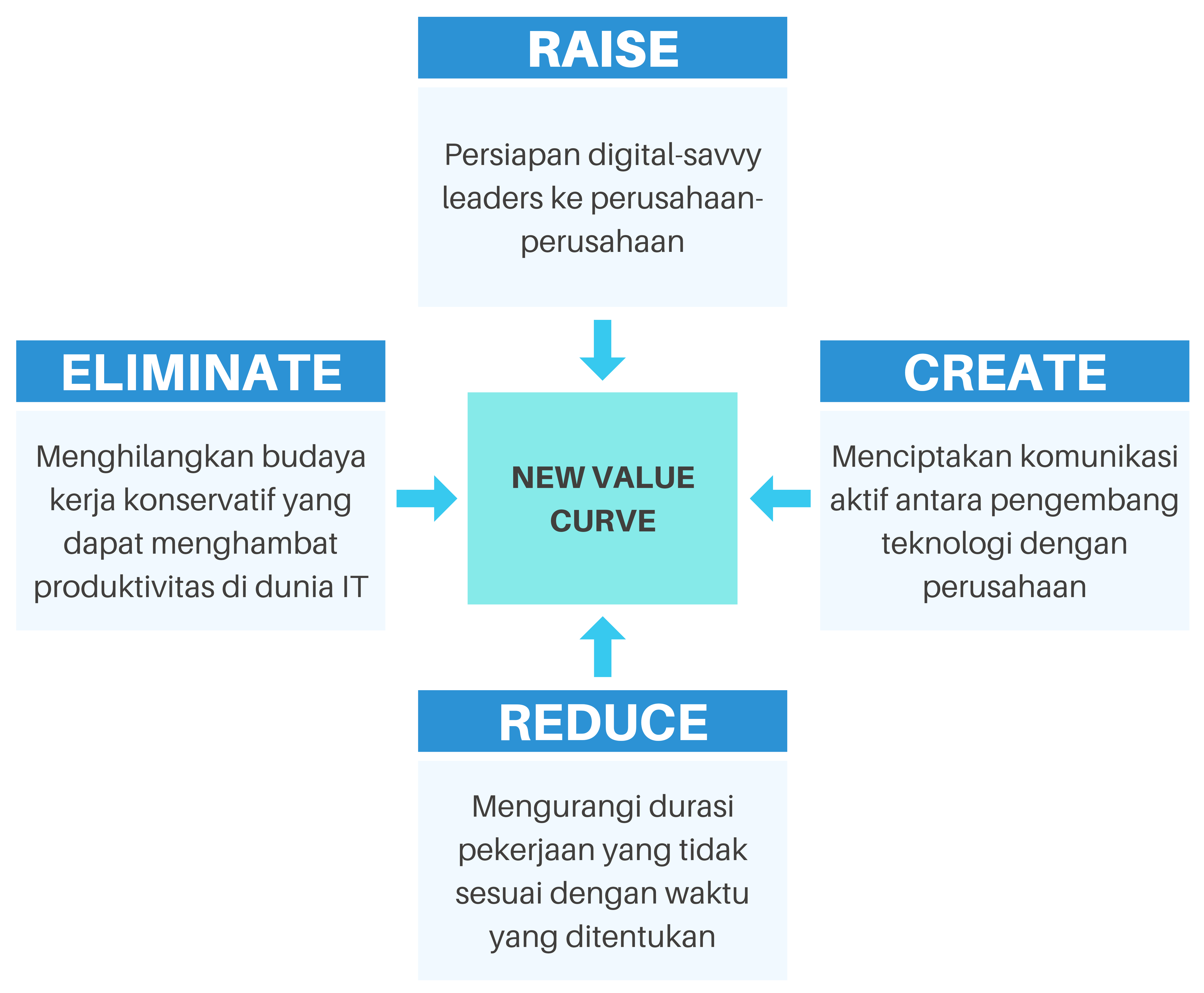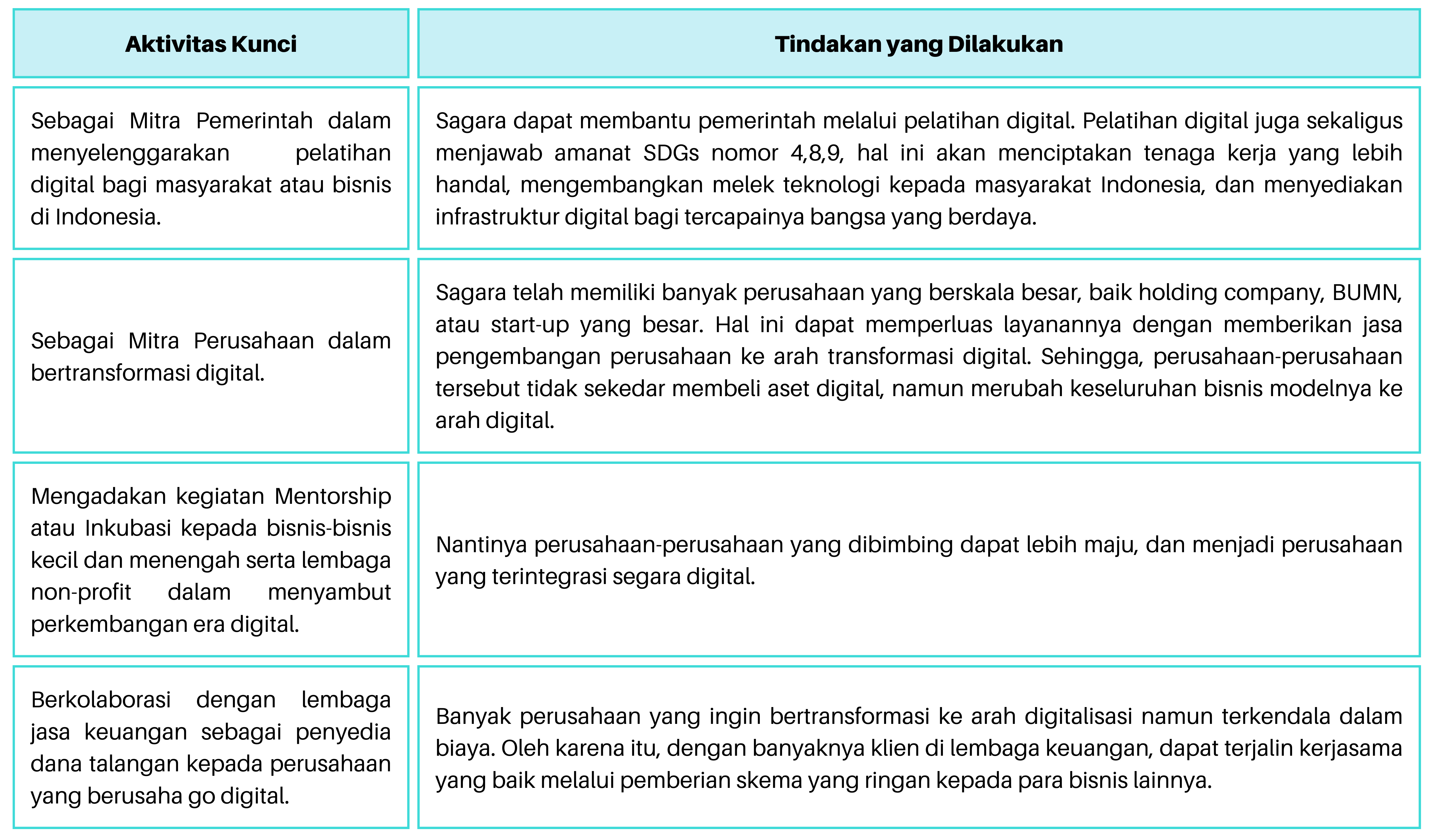 Semua faktor yang sudah dianalisis tersebut kemudian disintesiskan menjadi sebuah nilai baru bagi perusahaan dalam menjalankan bisnisnya ke depan. Kata kunci yang didapatkan dari keempat elemen di atas adalah tentang iklim komunikasi, penyiapan pemimpin yang cakap digital, efisiensi hingga efektivitas kerja. Sehingga dirumuskan nilai baru bagi Sagara Technology yang tercipta dari strategi ini adalah “Menciptakan Iklim Digital yang Efektif dan Efisien di Indonesia untuk menyiapkan digital-savvy leaders.” Hal ini dilakukan agar perusahaan dapat tetap fokus pada tujuan untuk menjadi perusahaan teknologi yang terbaik di Indonesia.