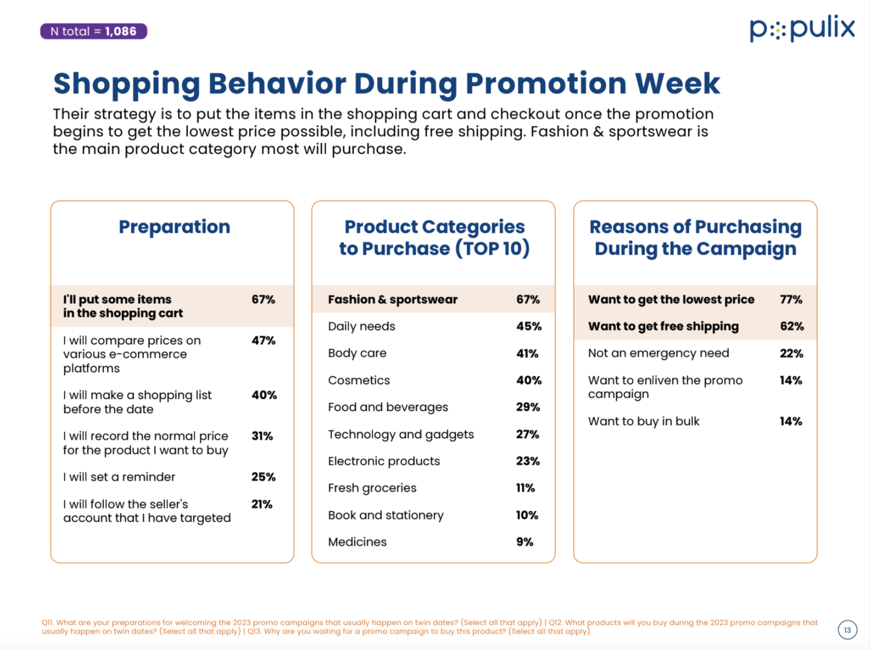 Hasil Survei Persiapan, Kategori Pilihan, dan Alasan Membeli saat Kampanye Promosi. Foto: Populix