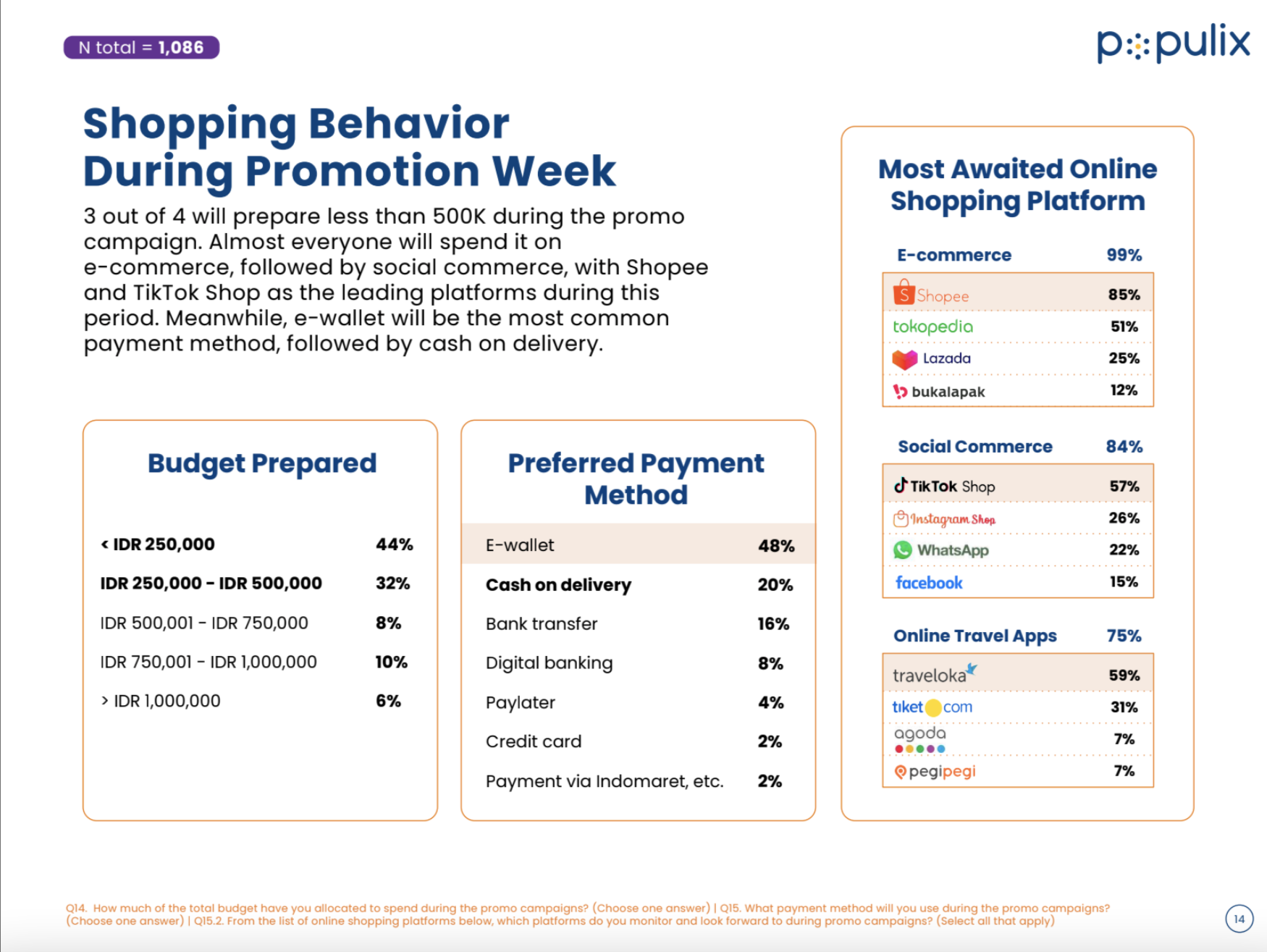 Hasil Survei Persiapan Budget, Metode Pembayaran, dan Platform Belanja saat Kampanye Promosi. Foto: Populix