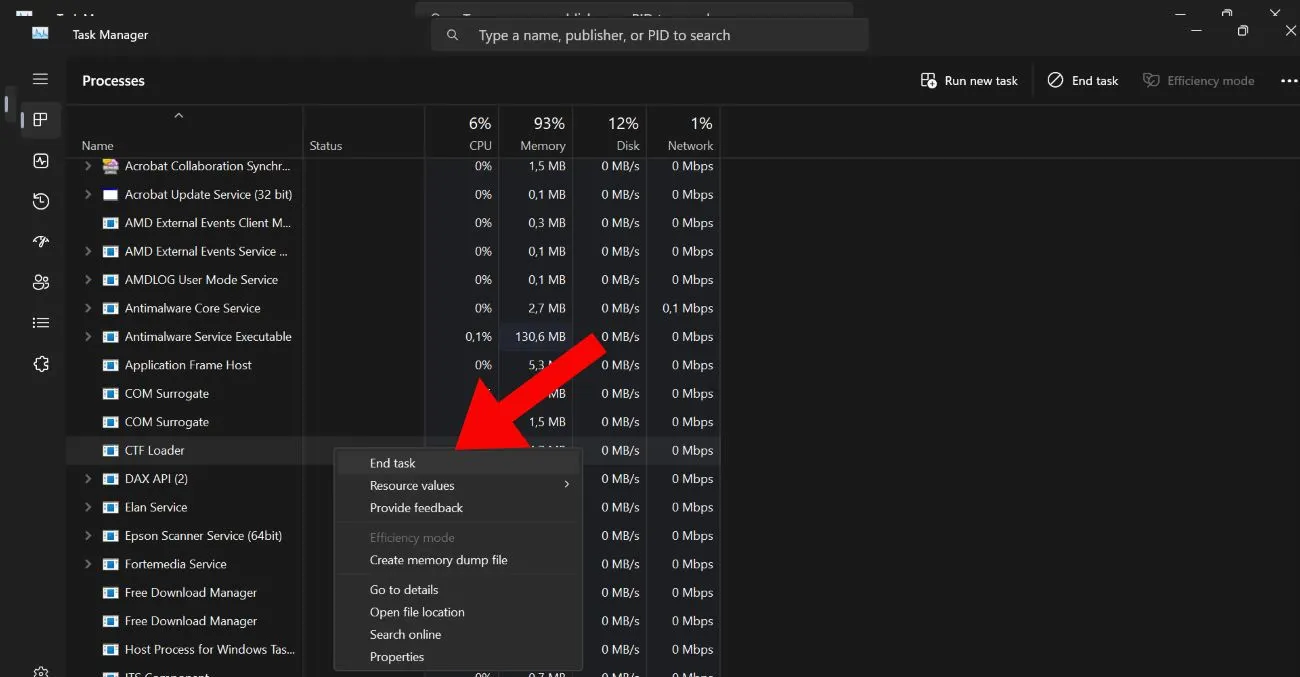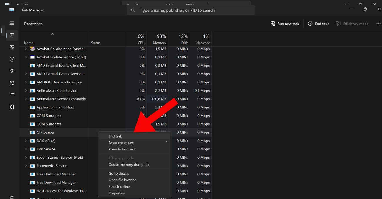 Ctrl + Shift + Esc untuk membuka Task Manager.