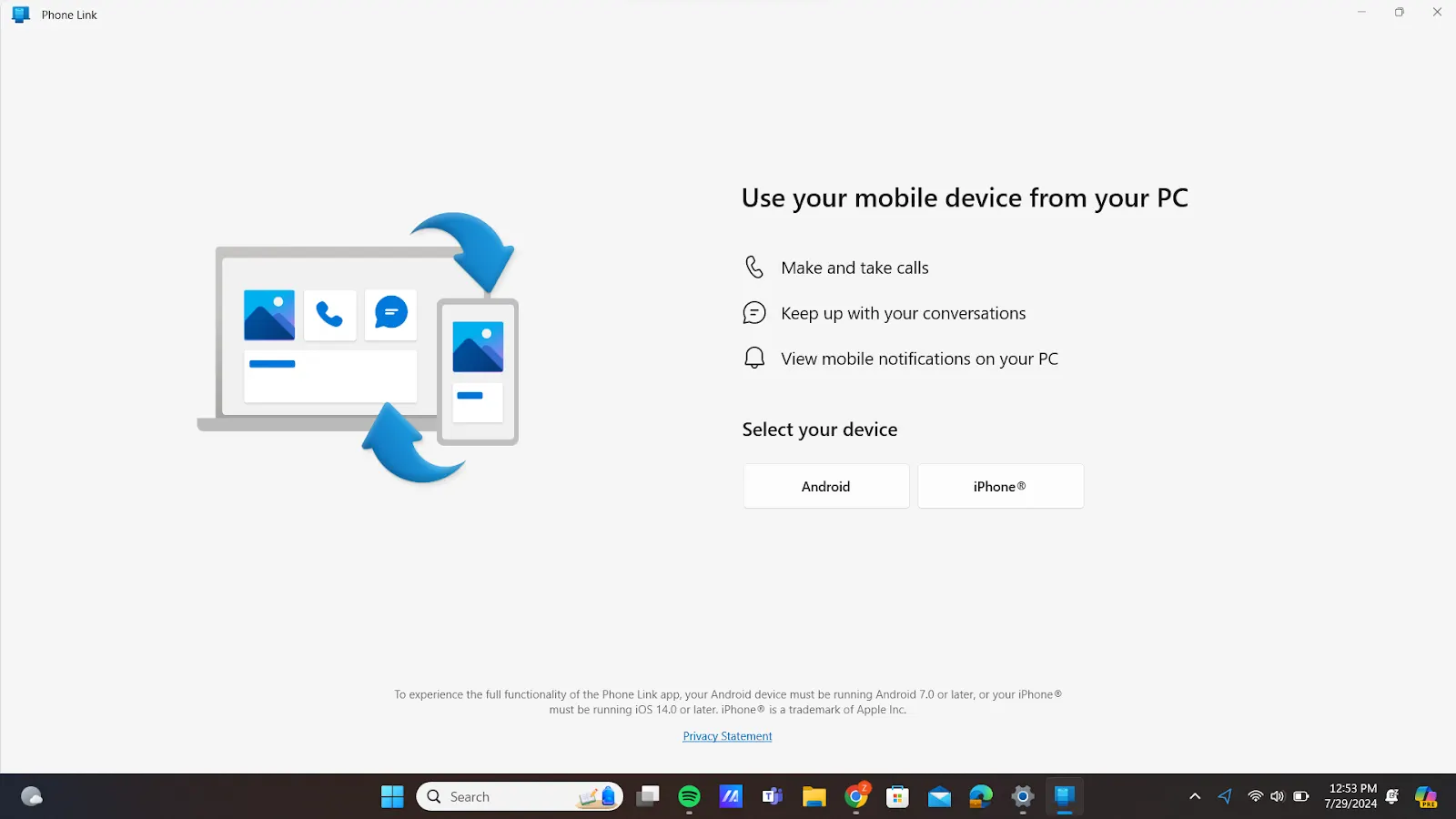 Selain itu, pastikan ponsel Android Anda mendukung aplikasi Link to Windows. Untuk dapat mengunakan Phone Link app, dapat dilakukan jika ponsel android anda dalam versi 7.0 keatas. Aplikasi ini biasanya sudah tersedia pada ponsel Samsung Galaxy dan Surface Duo. Jika belum terpasang, Anda bisa mengunduhnya dari Google Play Store.