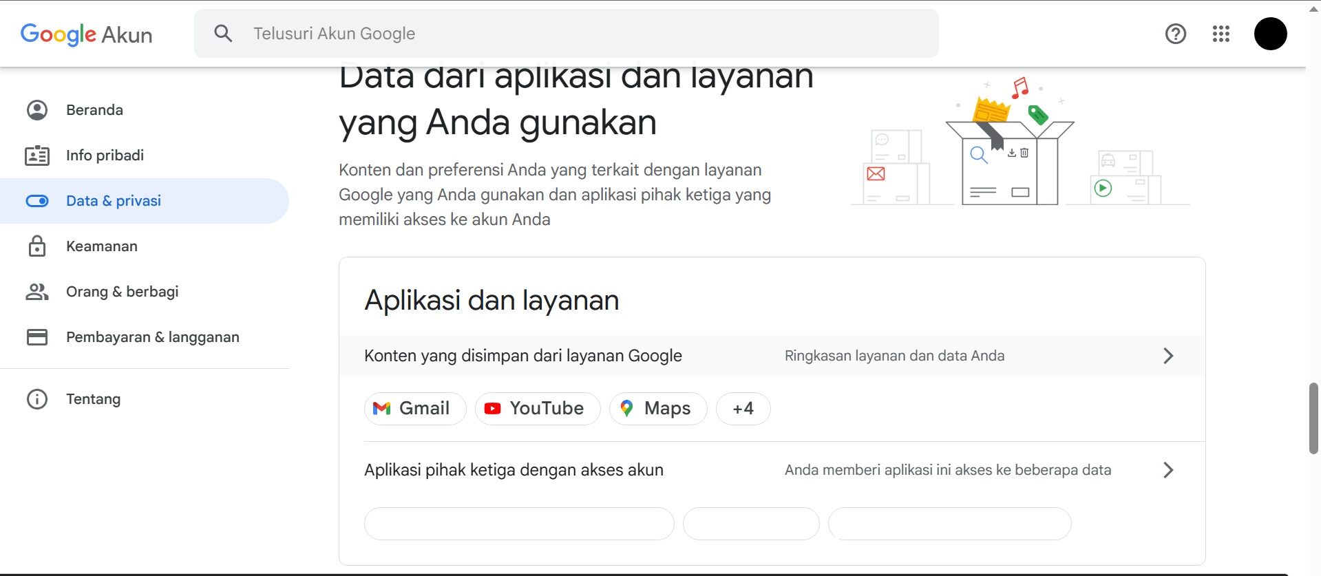 Di data layanan, scroll (gulirkan) ke bawah hingga kamu menemukan aplikasi dan layanan.