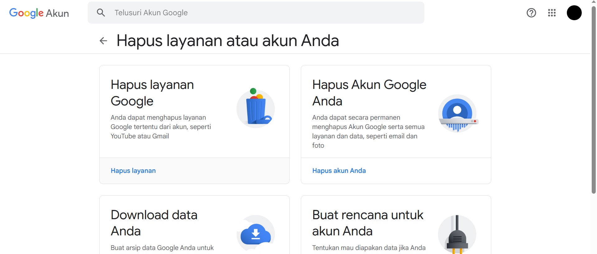 Cara paling jelas melakukannya sebaiknya gunakan komputer. Dari sini, buka my.account.google.com. Pastikan akun yang kamu masuki adalah akun Google yang ingin kamu hapus Gmailnya.