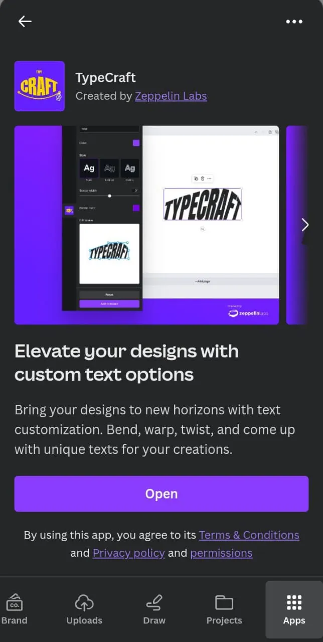 Selanjutnya, pada kolom search ketik “TypeCraft” dan klik “Open”