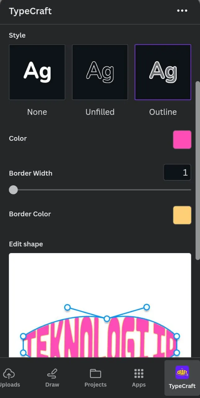 Selain itu, Anda juga dapat menambahkan dan mengganti warna outline agar tipografi Anda lebih menarik lagi. Warna teks pun bisa diubah sesuka Anda