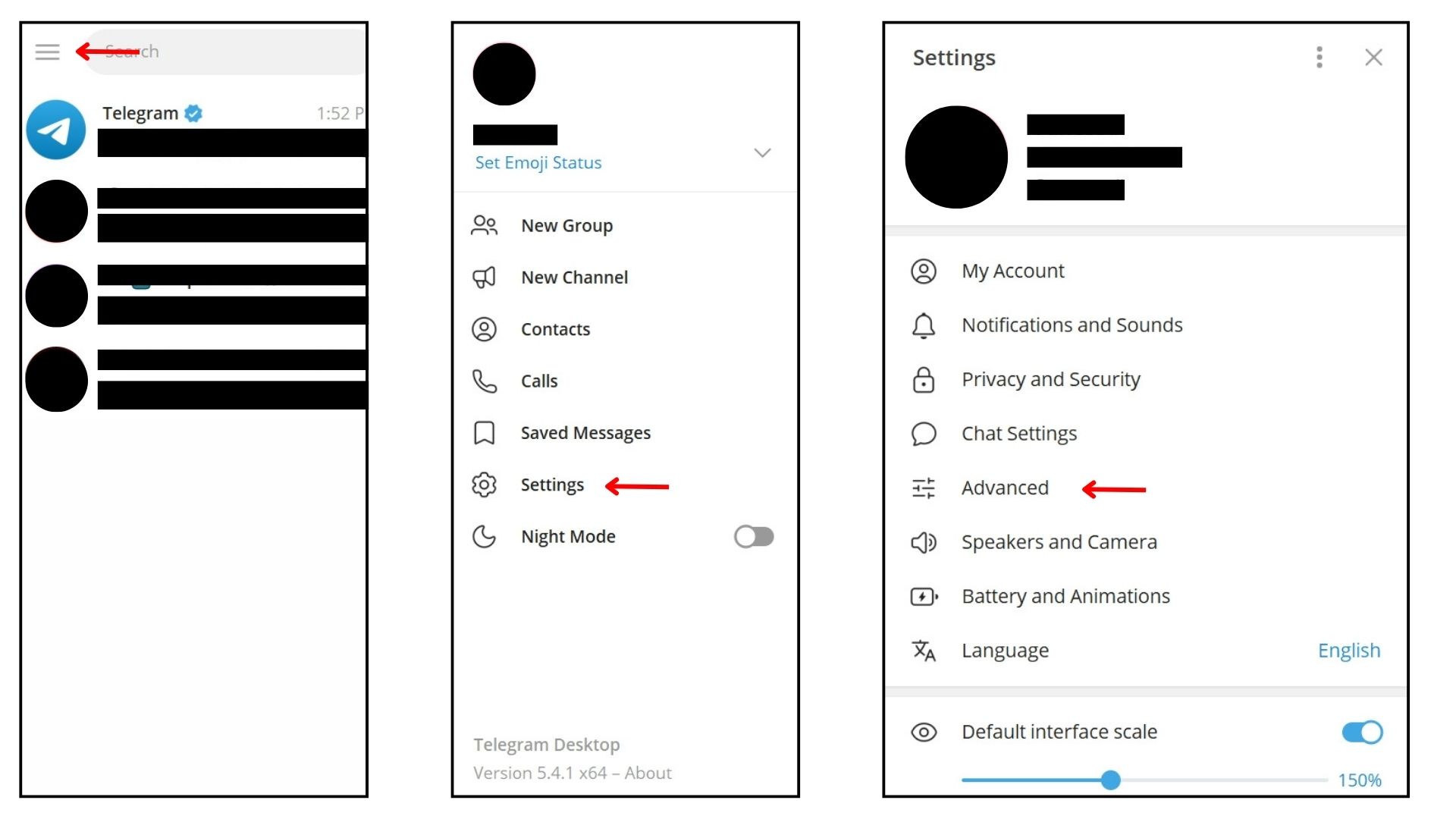 - Setelah mengonfirmasi, buka kembali "Settings", pilih "Advanced", dan pilih "Export Telegram"