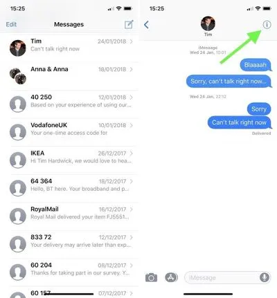 - Klik nama atau nomor telepon di bagian atas percakapan.