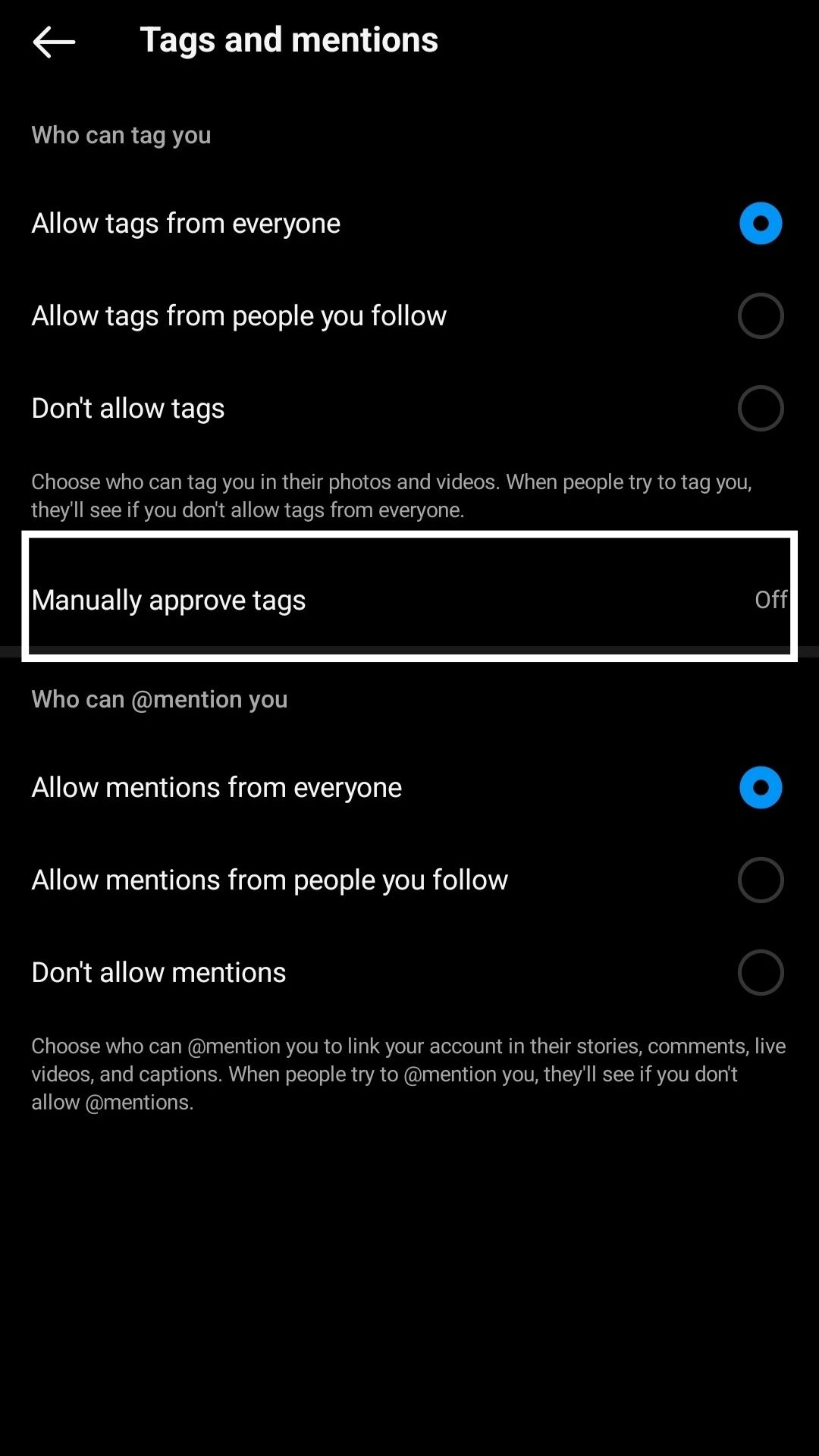2. Manually Approve Tags (Izinkan Penandaan Manual)