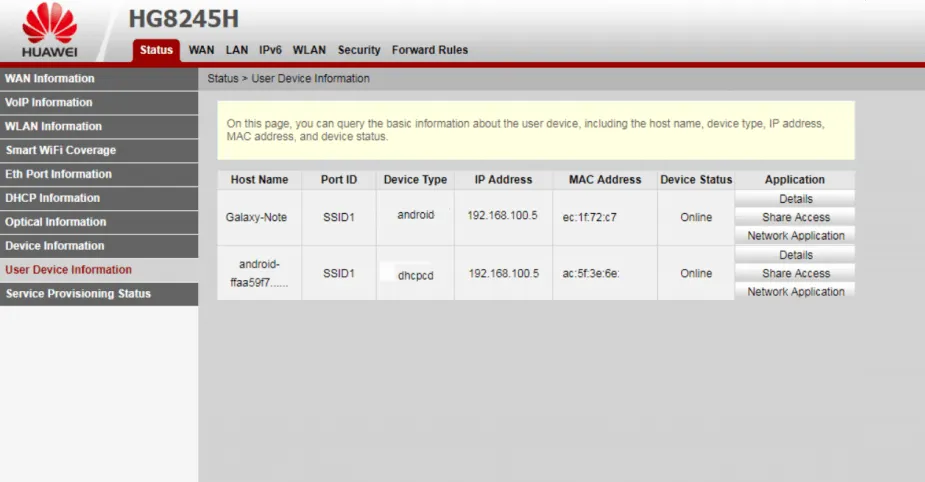 - Langkah 4. Selanjutnya, klik Status, lalu klik User Device Information, dan lihat informasi pada User Device Information.