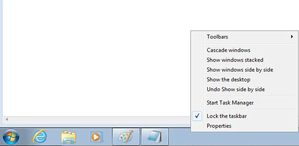 Di Windows 7, buka dua aplikasi. Setelah kedua aplikasi terbuka, klik kanan pada taskbar dan pilih "Show windows side by side." Voila: Anda akan membuka dua jendela secara bersamaan. Ini sesederhana itu. Dan jika Anda memilih cepat pada tangkapan layar di bawah, Anda akan melihat bahwa Anda juga dapat menumpuk jendela di atas satu sama lain.