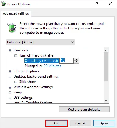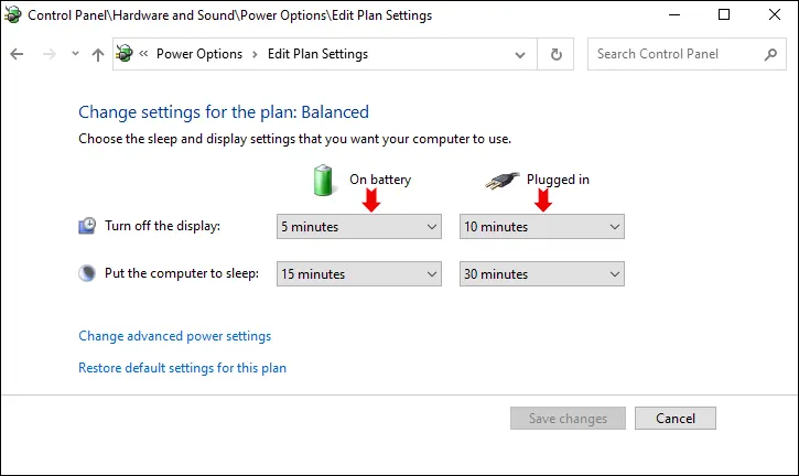 - Pilih setelan ‘On battery’ dan ‘Plugged in’, sesuaikan dengan laptop kamu