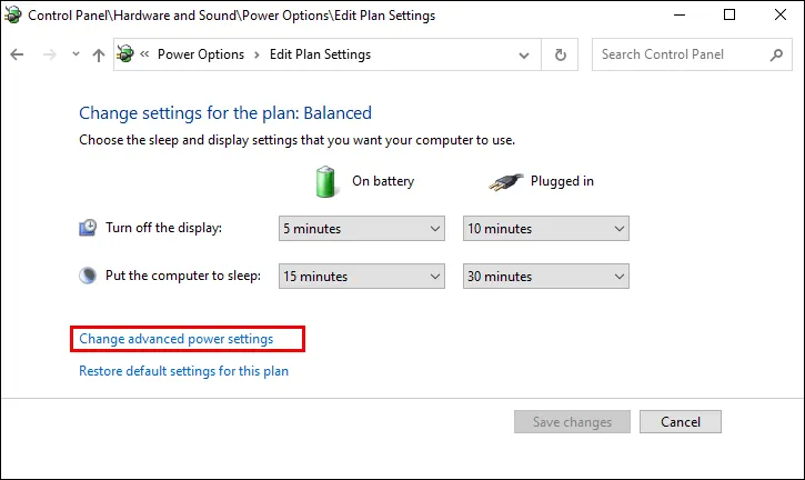- Kemudian pilih ‘Change advanced power settings’