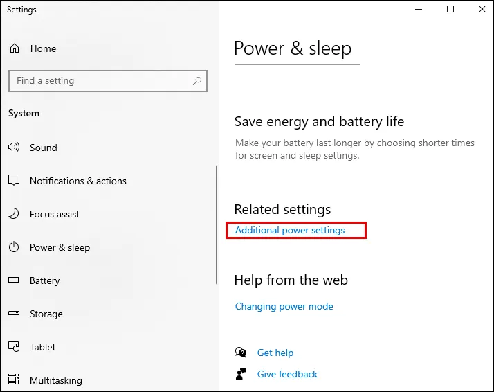 - Pada opsi Power & sleep pilih Pengaturan daya tambahan (additional power settings)
