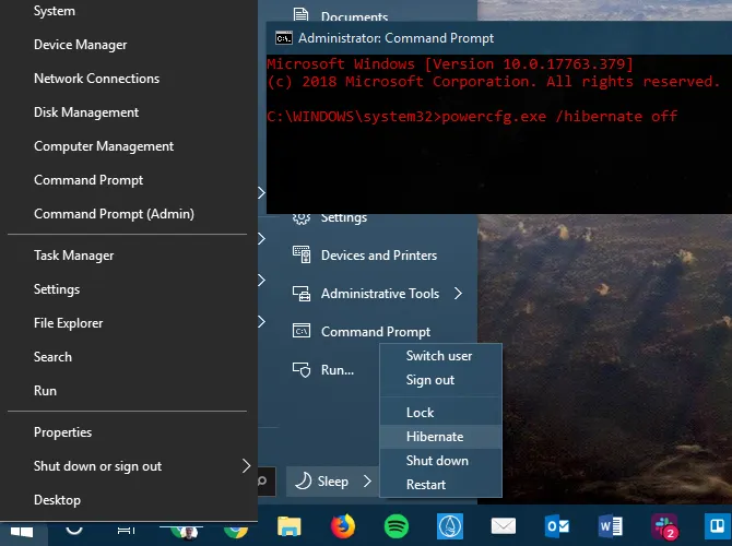 Jika kamu tidak menggunakan hibernasi dan ingin menonaktifkannya, kamu dapat melakukannya dengan mudah melalui Command Prompt. Namun kamu tidak boleh hanya menghapus hiberfil.sys, karena Windows akan membuatnya lagi.