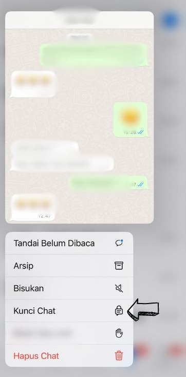 - Setelah dipastikan aktif, pilih salah satu chat pada daftar pesan di aplikasi WhatsApp yang ingin dikunci. Kemudian ketuk dan tahan chat tersebut, lalu pilih menu "Lock Chat atau Kunci Chat"